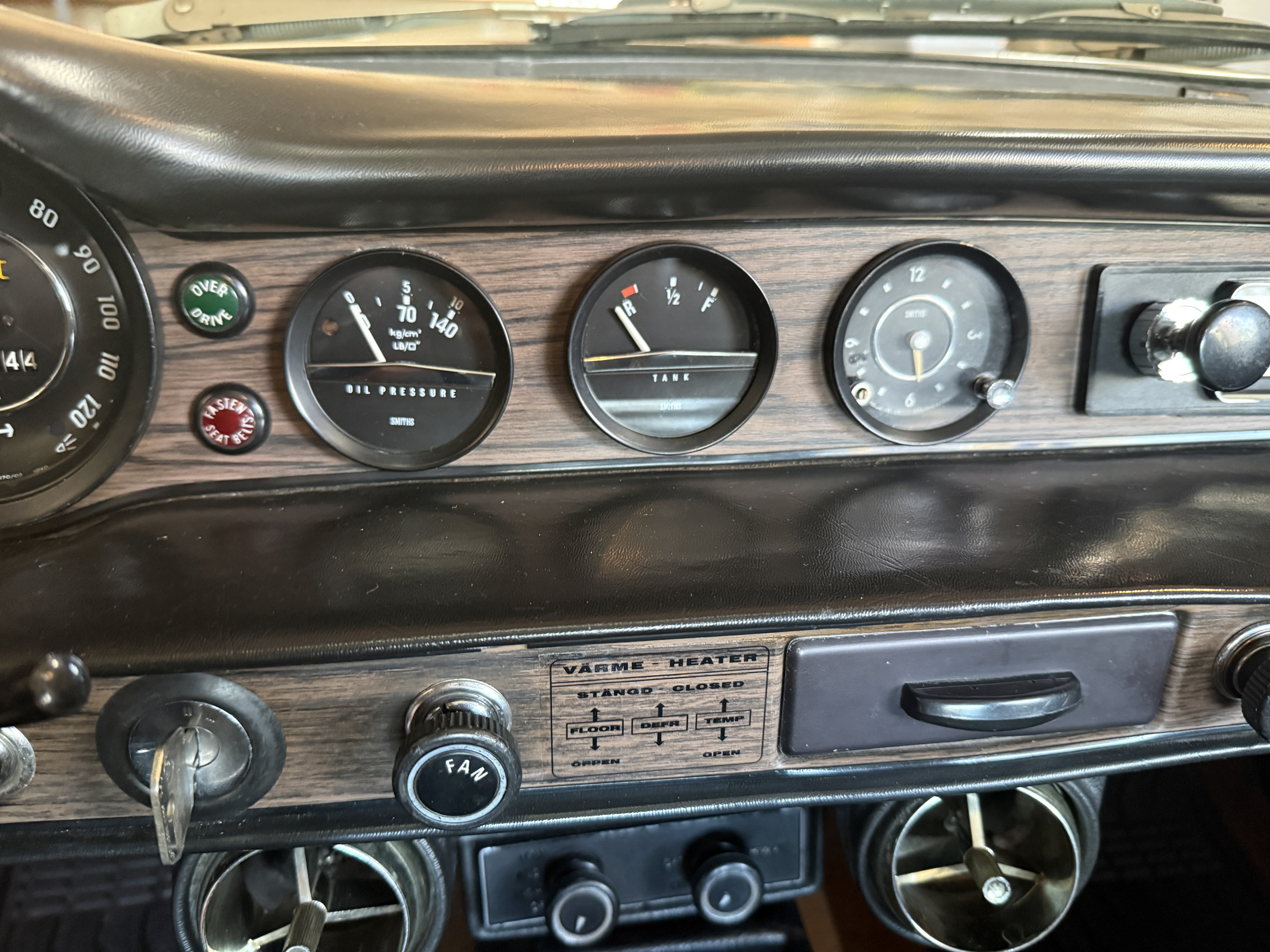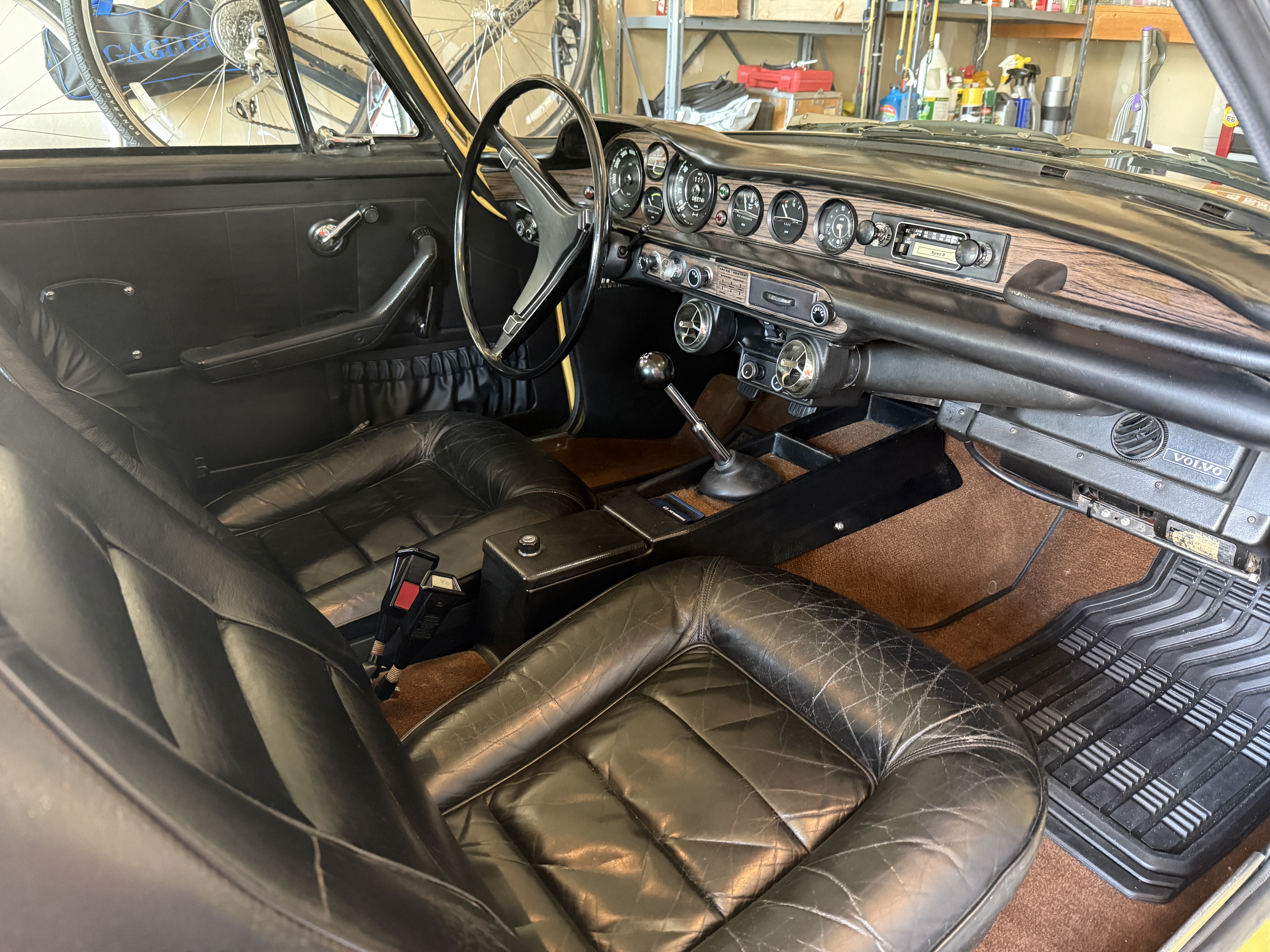 A prior owner installed 4″x4″ audio speakers in the front doors and ran the wires through the door hinges and under the windlace. The speakers tested good. However, the wiring was removed because it was being pinched and folded. The speakers remain in place (see photos). Two additional working 6″x9″ speakers exist in the rear cargo area, cut into the side panels. New wire was run to those speakers. The car had an original Volvo 140 monaural radio upon delivery, with audio output to a 4-way splitter to feed the speakers, but still in monaural mode. The radio was too big for the 1800 ES (wiper linkage arm would strike the radio). The radio and splitter were removed. A period-correct and working Clarion AM/FM stereo/cassette unit was installed and wired to the two rear speakers only. Cassette functionality was not tested. Radio antenna was replaced with a newer “stubby” detachable model.