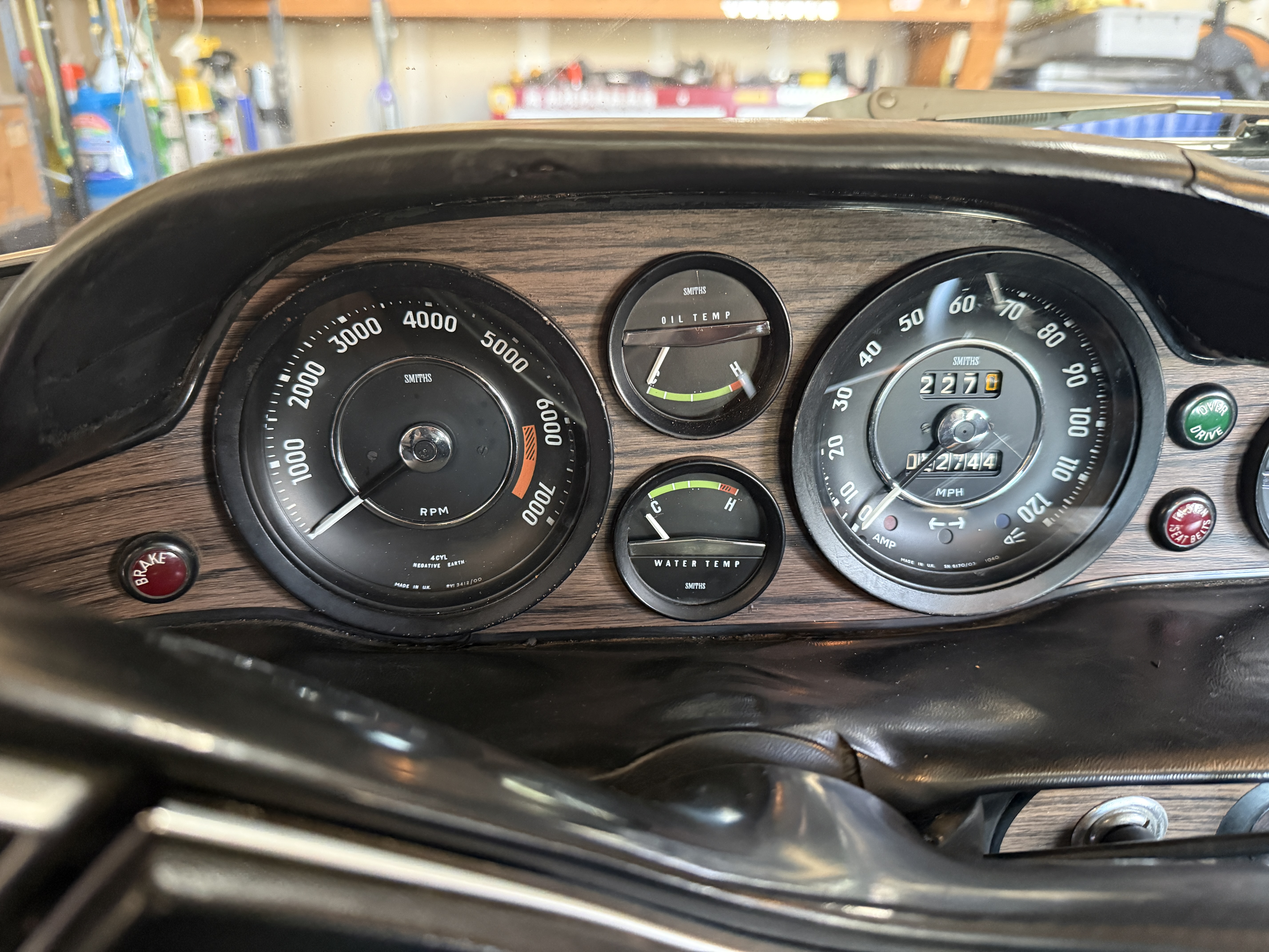 There is a crack on the top of the dash just in front of the driver. The underside of the upper dashboard under the arch was cracked and falling away. I cut out all the loose material and painted the underlying metal black to blend in. It’s hardly noticeable.