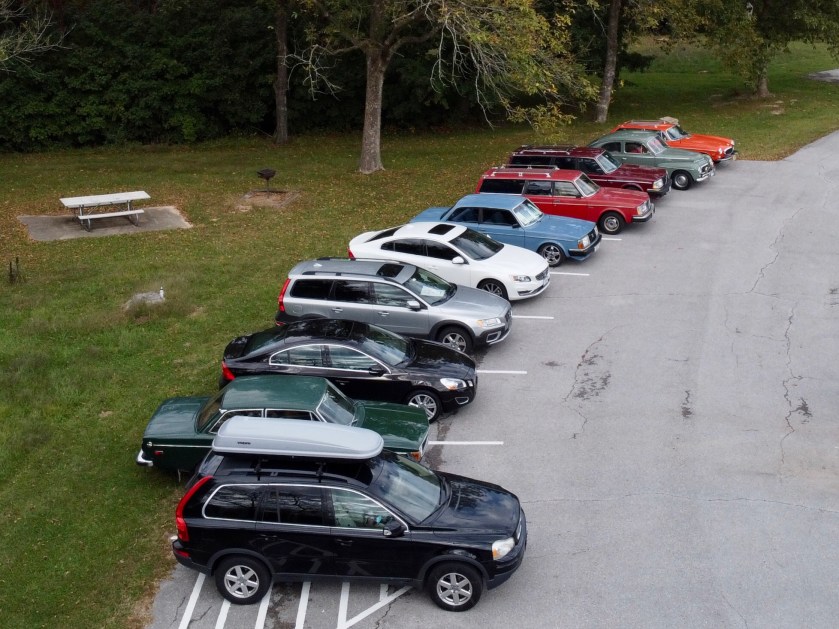 Six cars from our Chapter met four cars from the Kansas City Chapter for the annual Mid-Missouri Meet-up, version 8. Rock Bridge State Park outside Columbia was chosen as the location. It was a great venue with space to park so that all cars could be nearby and afford easy access for viewing and Volvo chat. Some attendees offered various Volvo parts and accessories for sale.